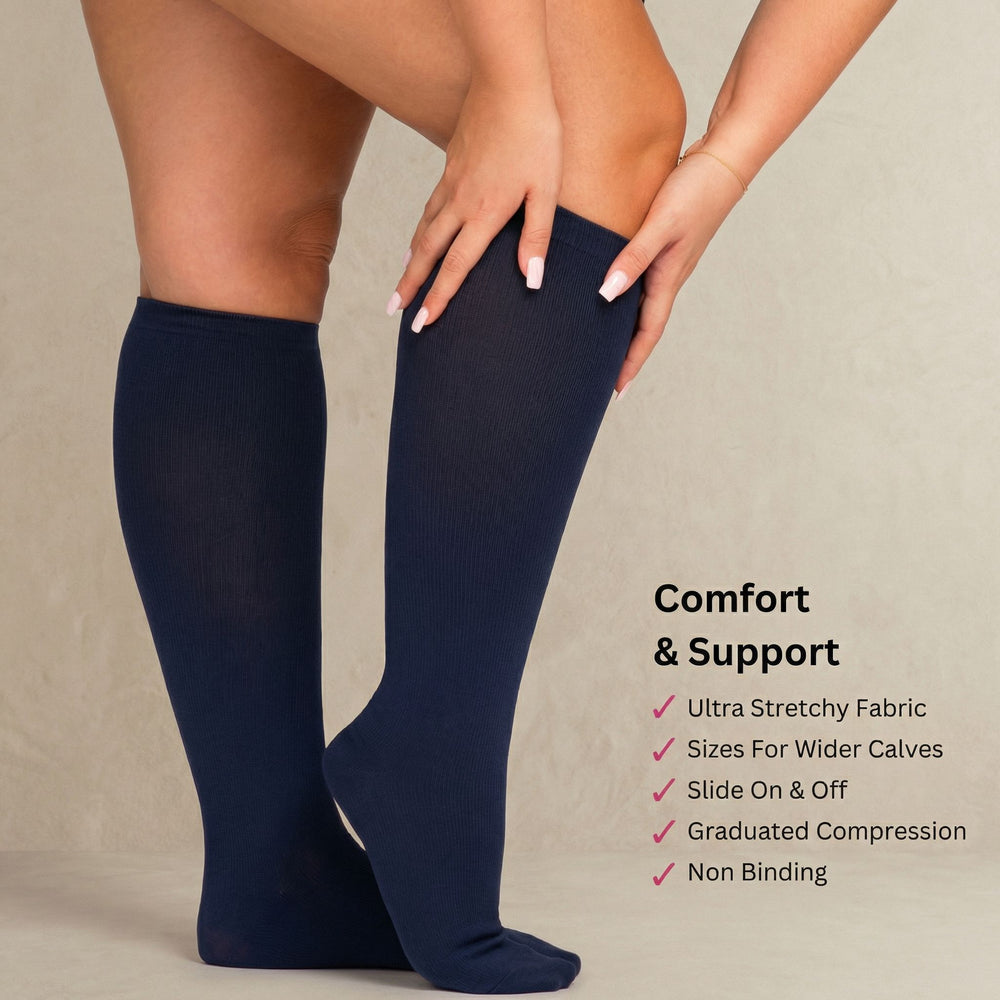 Our premium compression socks provide 20-30mmHg graduated compression, designed to support healthy circulation and manage the feeling of tired, heavy legs.